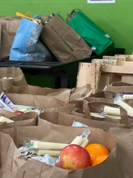 In addition to providing bags to the community food bank, TBT Social Action volunteers assembled 100 kit bags for those facing housing insecurity.